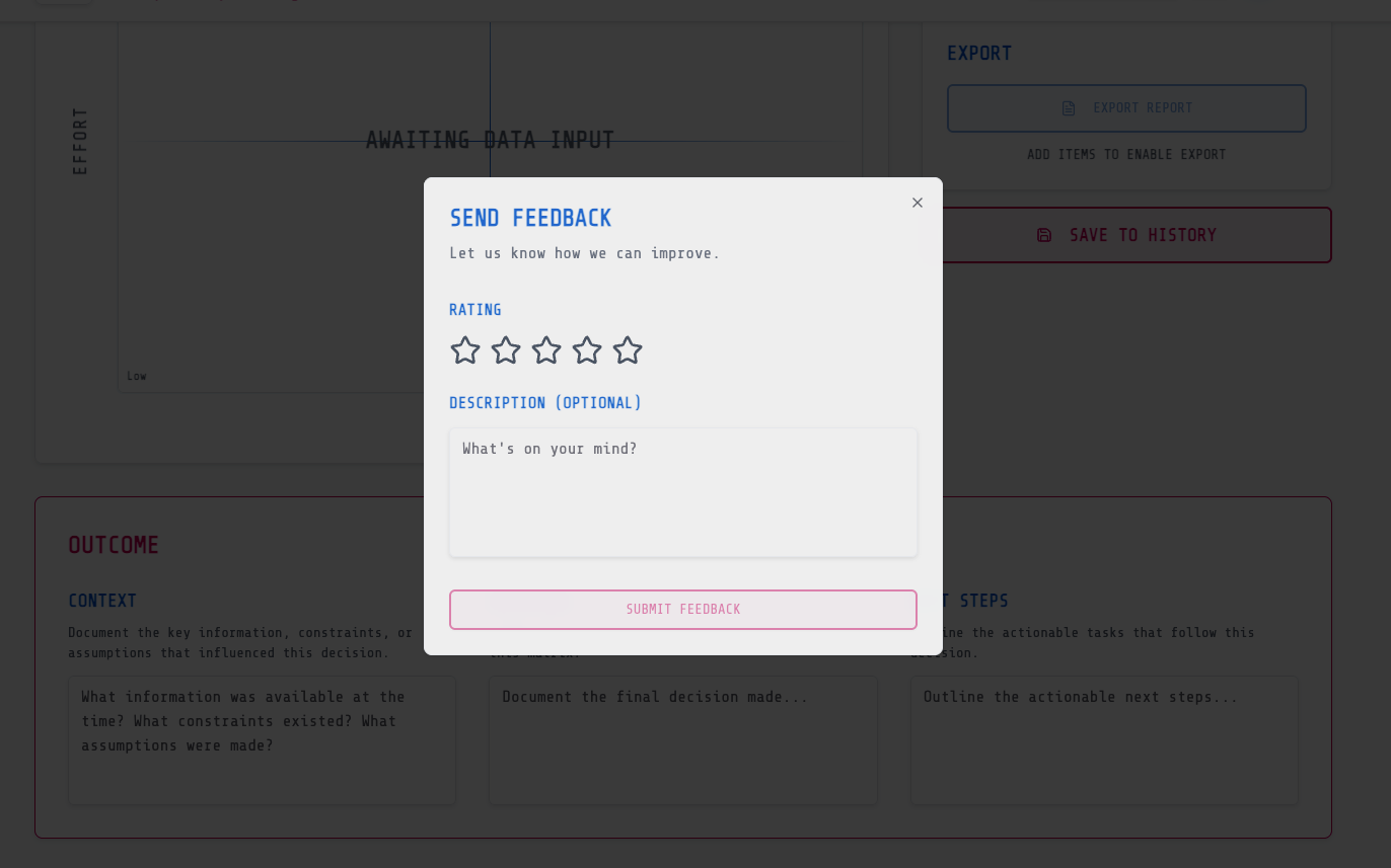 NextPriority is an app that helps decision-makers gain clarity about their decisions through decision visualization and documentation. It enables you to create 2X2 matrices, compare and contrast items with your team, and document your decisions so you can reference them later and improve your decision-making process as a team.